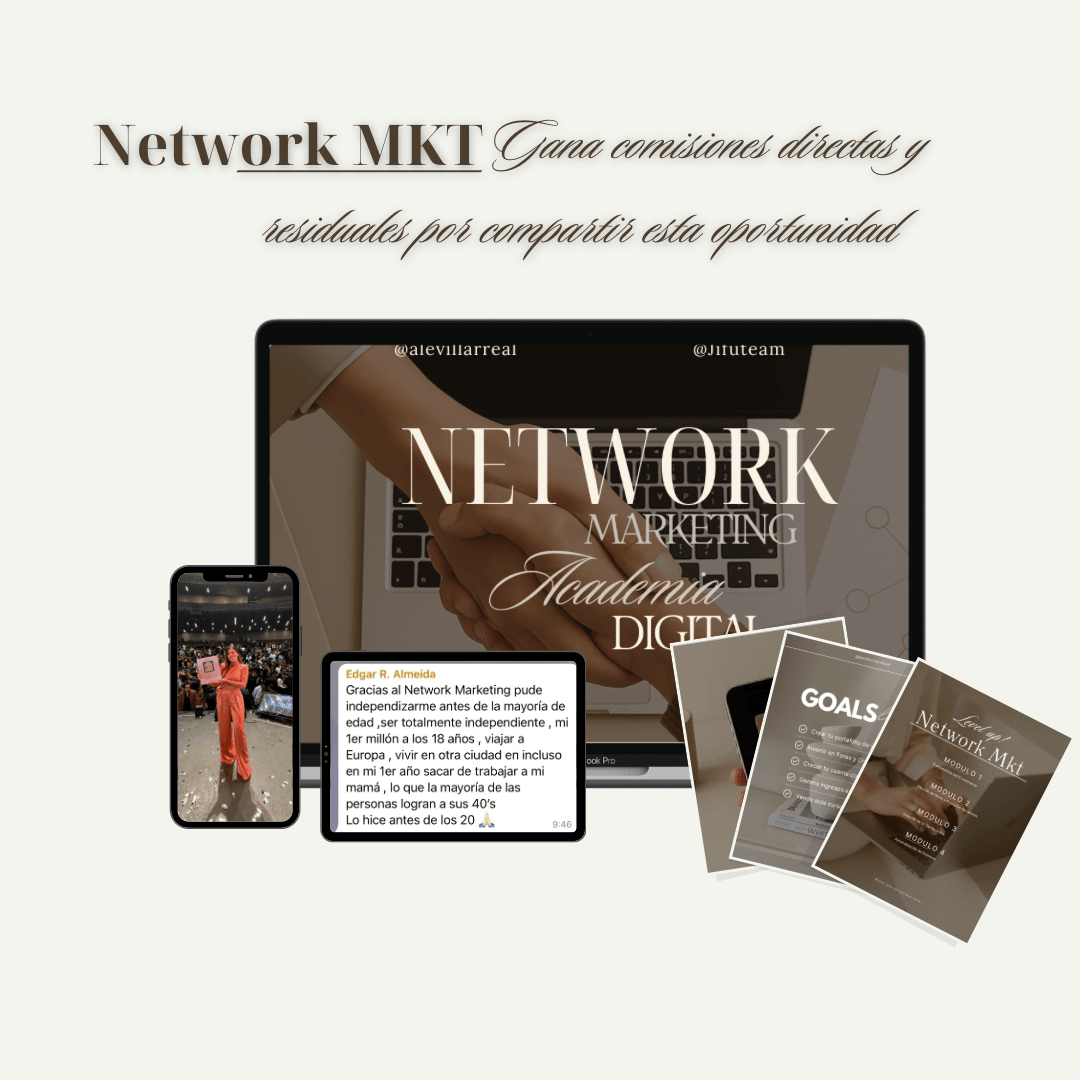El network marketing es un modelo de negocio que te permite recomendar productos o servicios digitales y ganar comisiones por cada cliente. Además, si esas personas también deciden recomendar, tú recibes ingresos residuales mes tras mes gracias al esfuerzo en equipo.